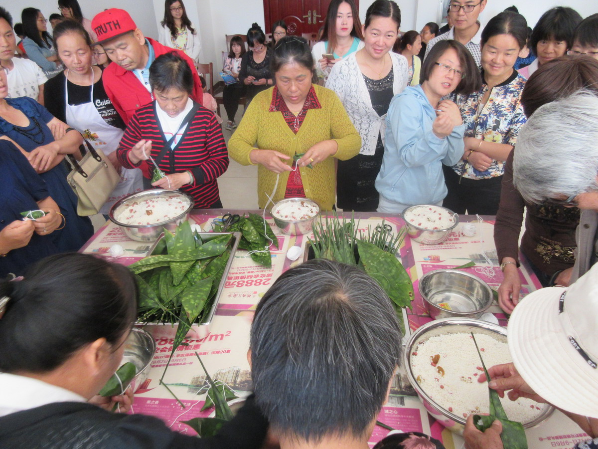 •     為繼承和發(fā)揚(yáng)民族優(yōu)秀傳統(tǒng)文化,營造和諧社區(qū)氛圍,增強(qiáng)小區(qū)業(yè)主鄰里間感情,豐富小區(qū)業(yè)主業(yè)余文化生活,201668,由金正天然居物業(yè)管理處和天然居銷售部共同主辦、藍(lán)天琴行協(xié)辦的天然居慶端午業(yè)主聯(lián)系暨包粽子大賽在天然居小區(qū)食堂成功舉辦,經(jīng)過前期籌備,活動當(dāng)天共有40余戶業(yè)主和意向客戶參與包粽子比賽,實(shí)際到場100余人。