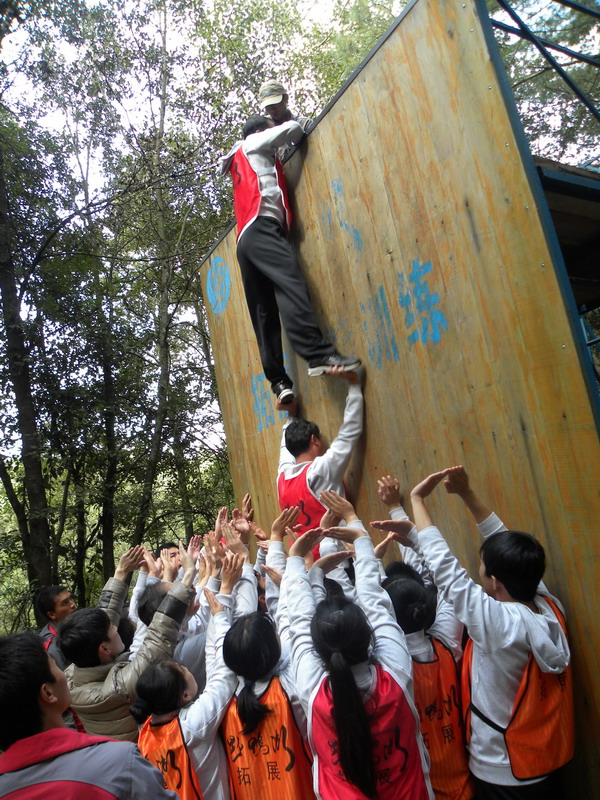•  20121134日,昆明野鴨湖拓展訓練基地那里留下了我們成長的足跡。在各項訓練活動中,歌聲與微笑同在,汗水與淚水交織,演繹著敢于擋當、不言放棄,奮力拼搏、突破自我,彼此信任、緊密團結(jié)的真實故事,深深打動了每一個人。最特別的還是徒手翻越4.5高的團隊墻,因為那里不僅僅有大家奮力向上攀爬劃下的印跡,更多的攀爬過程中緊密配合的汗水及動人的淚水。大家真正體會到了“責任”的份量與團結(jié)的力量。我們永遠都是一個團隊!